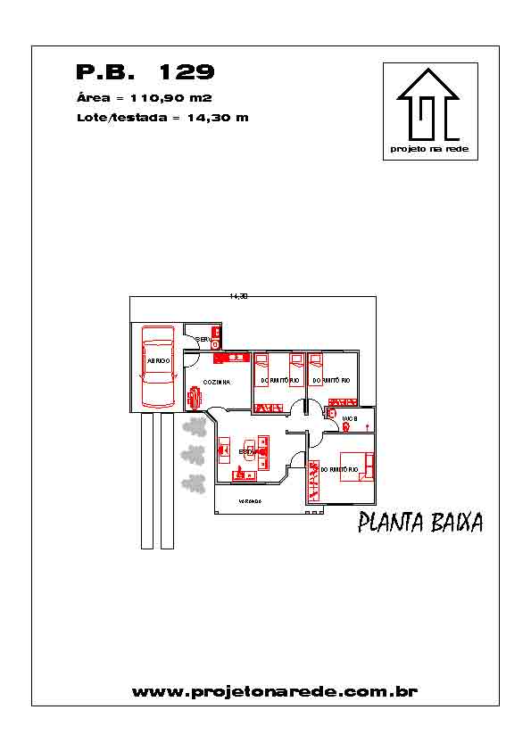 Modelos de planta baixa para casas com área de 101 a 150 m2